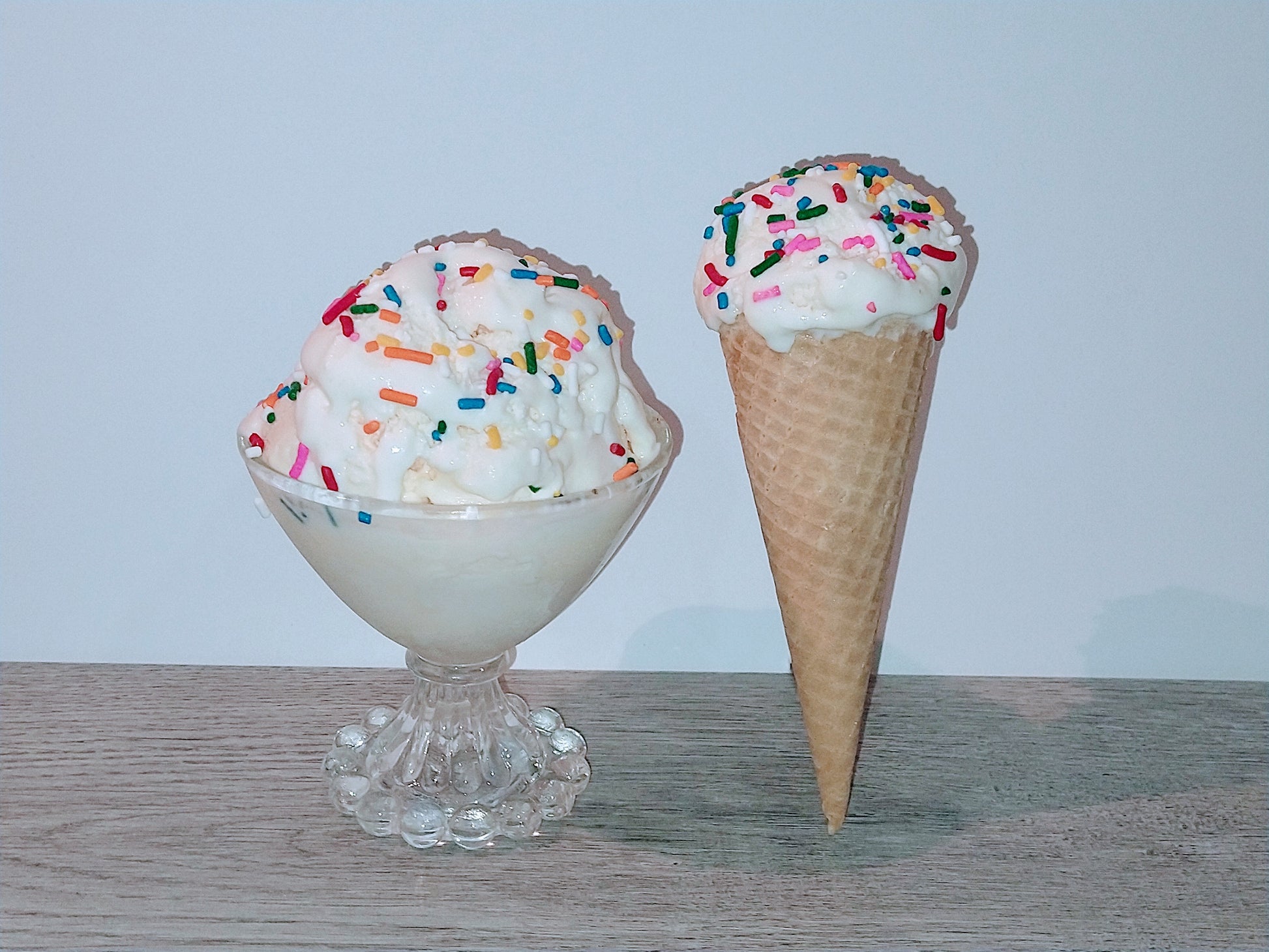Vanilla soft serve ice cream kit with rainbow sprinkles